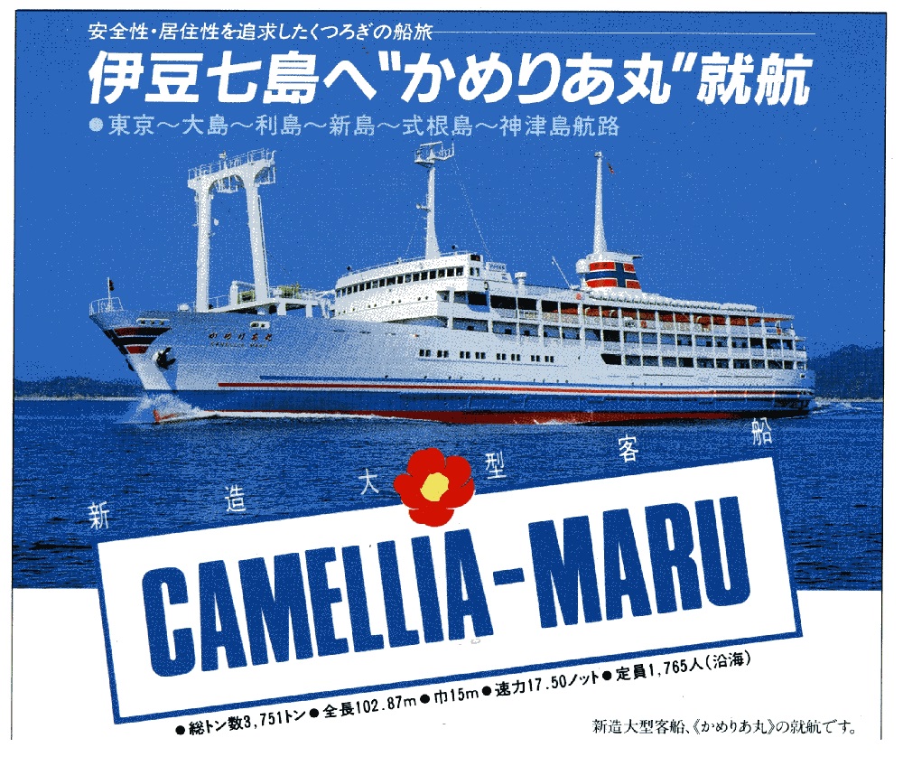 かめりあ丸は、それまで北航路(東京-大島-新島-神津島航路)に充当されていた2,200屯級貨客船「ふりいじあ丸」の代替船として、1986年にデビューしました。